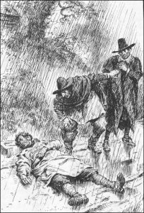 He is King Harold of England, who had escaped from the Battle of Hastings, and wandered half-mad ever since from shrine to shrine. When King Henry is told the truth he speaks courteously to Harold, and gives him a goblet of wine. No-one speaks against him, and Harold dies on Hugh’s shoulder in the presence of the King.