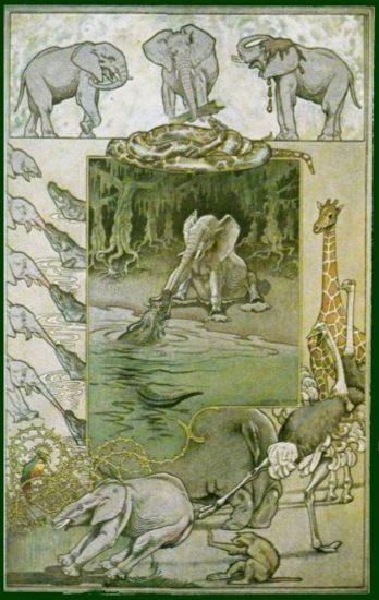 At last things grew so exciting that his dear families went off one by one in a hurry to the banks of the great grey-green, greasy Limpopo River, all set about with fever-trees, to borrow new noses from the Crocodile. When they came back nobody spanked anybody any more; and ever since that day, O Best Beloved, all the Elephants you will ever see, besides all those that you won’t, have trunks precisely like the trunk of the ‘satiable Elephant’s Child.
