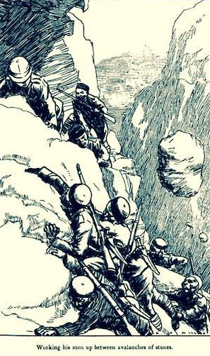This ex-aide-de-camp happened to be a good mountaineer, and he was told off with a hundred native troops, Goorkhas and Dogra Sikhs, to climb up into the top tier of the fortifications. The only way of arriving was to follow a sort of shoot in the cliff-face which the enemy had worn smooth by throwing rocks down. Even in daylight, in peace, and with good guides, it would have been fair mountaineering.